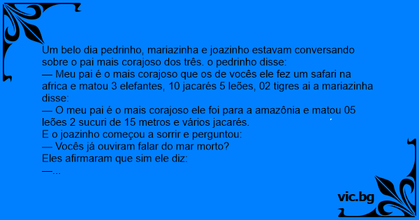 Um belo dia pedrinho, mariazinha e joazinho estavam conversando sobre o pai mais corajoso dos três. o pedrinho disse: