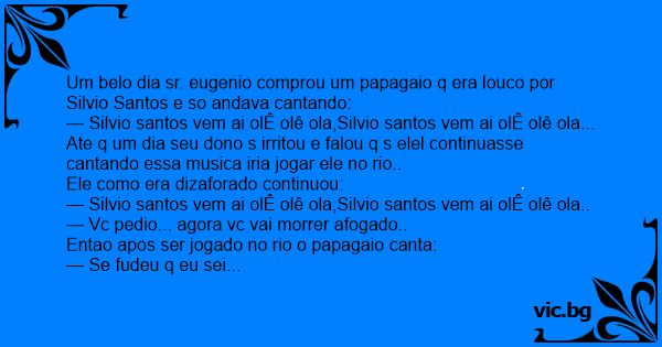 Um belo dia sr. eugenio comprou um papagaio q era louco por Silvio Santos e so andava cantando: