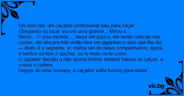 O caçador decidiu q não queria morrer entaum baixou as calças, e o urso o comeu.