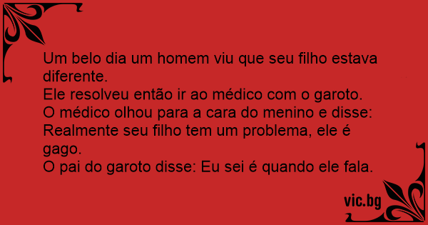 O médico olhou para a cara do menino e disse: Realmente seu filho tem um problema, ele é gago.