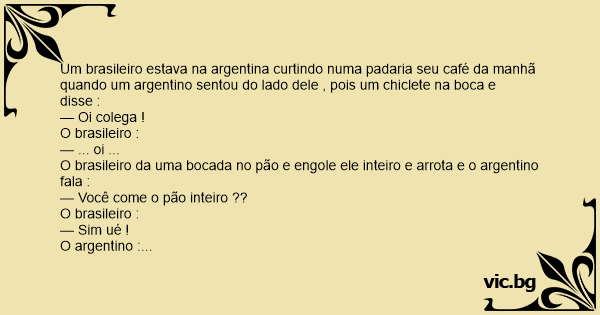 O brasileiro da uma bocada no pão e engole ele inteiro e arrota e o argentino fala :