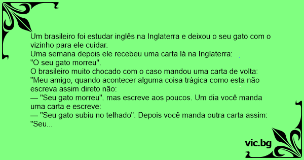 — "Seu gato morreu". mas escreve aos poucos. Um dia você manda uma carta e escreve: