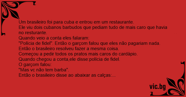 Um brasileiro foi para cuba e entrou em um restaurante.