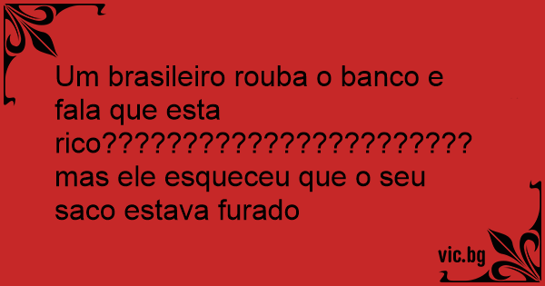 Um brasileiro rouba o banco e fala que esta rico???????????????????????mas ele esqueceu que o seu saco estava furado