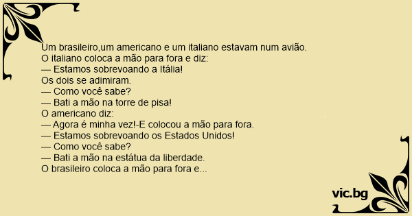 Um brasileiro,um americano e um italiano estavam num avião.