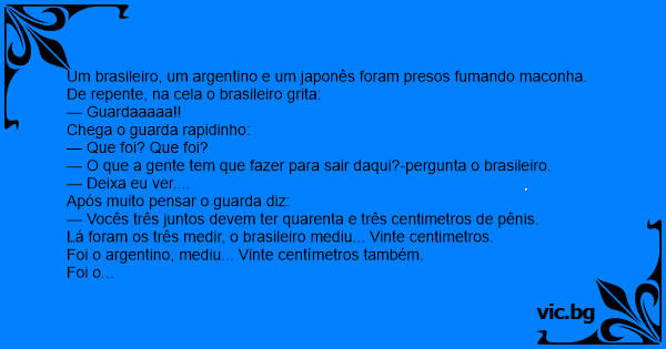 — Vocês três juntos devem ter quarenta e três centimetros de pênis.