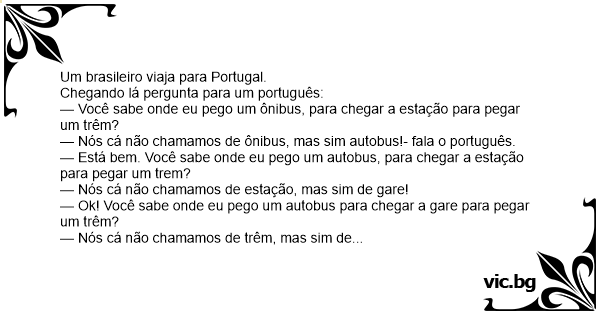 — Nós cá não chamamos de ônibus, mas sim autobus!- fala o português.