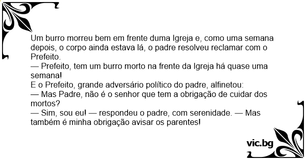 — Prefeito, tem um вurrо morto na frente da Igreja há quase uma semana!