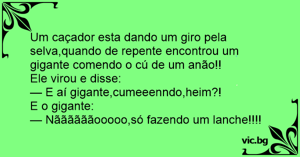 Um caçador esta dando um giro pela selva,quando de repente encontrou um gigante comendo o cú de um anão!!