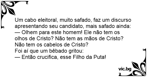 Um cabo eleitoral, muito safado, faz um discurso apresentando seu candidato, mais safado ainda: