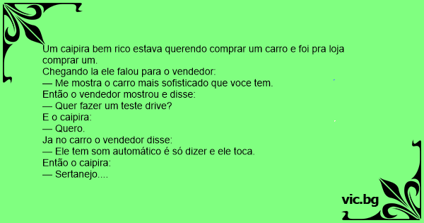 Um caipira bem rico estava querendo comprar um carro e foi pra loja comprar um.