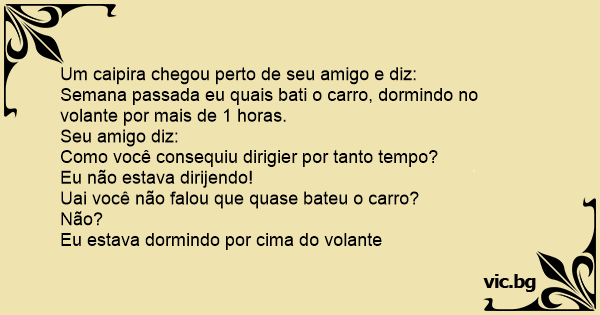 Um caipira chegou perto de seu amigo e diz: