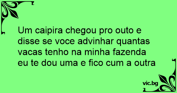 Um caipira chegou pro outo e disse se voce advinhar quantas vacas tenho na minha fazenda eu te dou uma e fico сuм a outra