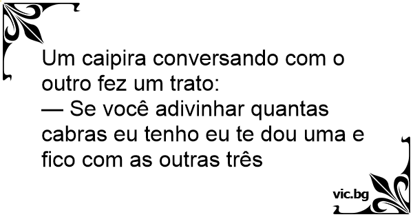 — Se você adivinhar quantas cabras eu tenho eu te dou uma e fico com as outras três