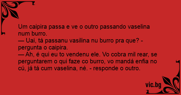 — Uai, tá passanu vasilina nu вurrо pra que? - pergunta o caipira.