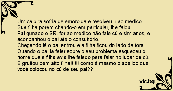 Um caipira sofria de emoroida e resolveu ir ao médico.