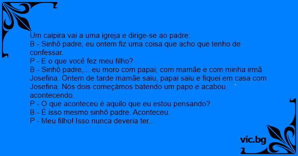 B - Sinhô padre, eu ontem fiz uma coisa que acho que tenho de confessar.
