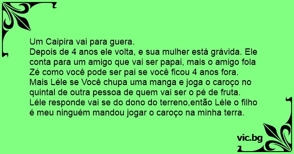 Depois de 4 anos ele volta, e sua mulher está grávida. Ele conta para um amigo que vai ser papai, mais o amigo fola Zé como você pode ser pai se você ficou 4 anos fora.