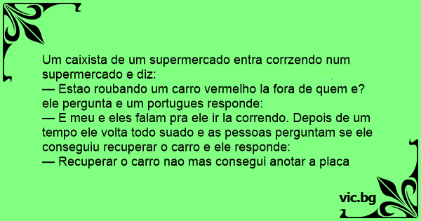 — Estao roubando um carro vermelho la fora de quem e?ele pergunta e um portugues responde: