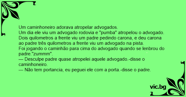 — Desculpe padre quase atropelei aquele advogado.-disse o caminhoneiro.