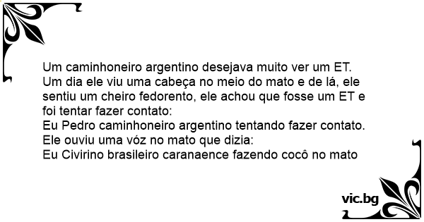 Eu Pedro caminhoneiro argentino tentando fazer contato. Ele ouviu uma vóz no mato que dizia: