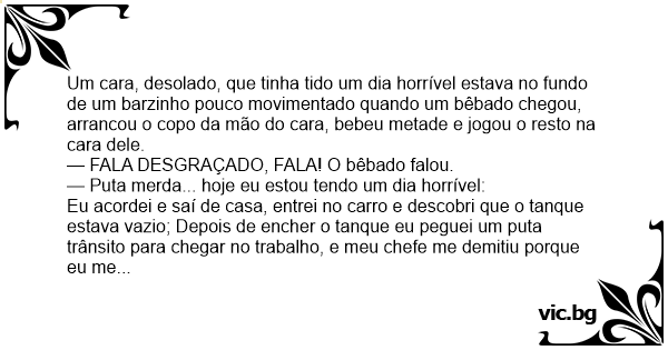 — FALA DESGRAÇADO, FALA! O bêbado falou.