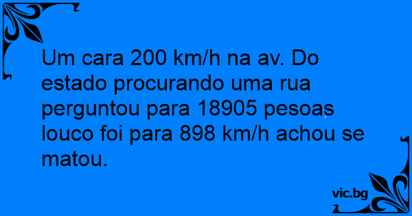Um cara 200 km/h na av. Do estado procurando uma rua perguntou para 18905 pesoas louco foi para 898 km/h achou se matou.