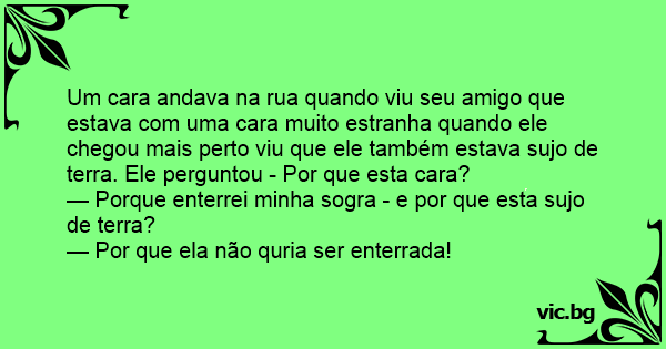 Um cara andava na rua quando viu seu amigo que estava com uma cara muito estranha quando ele chegou mais perto viu que ele também estava sujo de terra. Ele perguntou - Por que esta cara?