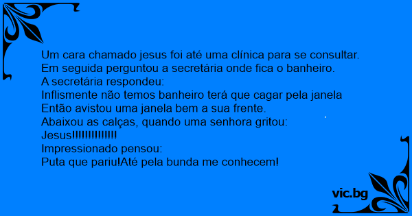 Um cara chamado jesus foi até uma clínica para se consultar.