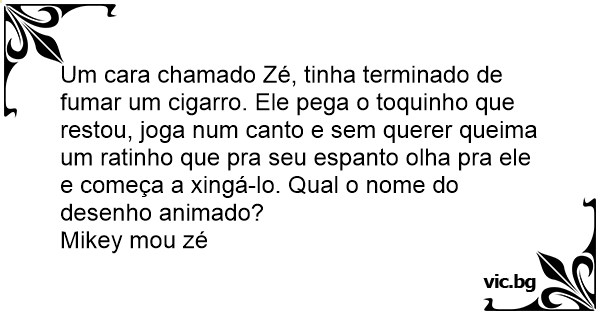 Um cara chamado Zé, tinha terminado de fumar um cigarro. Ele pega o toquinho que restou, joga num canto e sem querer queima um ratinho que pra seu espanto olha pra ele e começa a xingá-lo. Qual o nome do desenho animado?