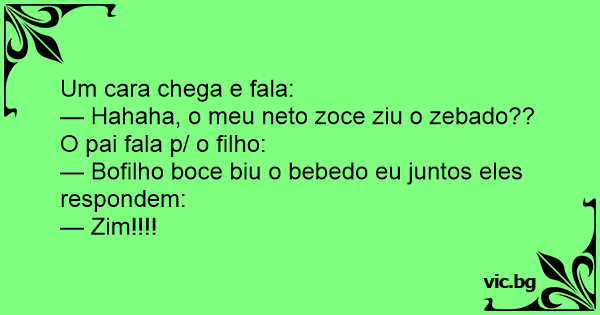 — Hahaha, o meu neto zoce ziu o zebado??