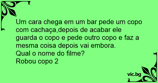 Um cara chega em um bar pede um copo com cachaça,depois de acabar ele guarda o copo e pede outro copo e faz a mesma coisa depois vai embora.
