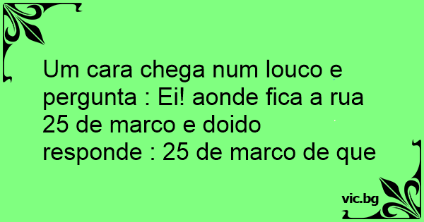 Um cara chega num louco e pergunta : Ei! aonde fiса a rua 25 de marco e doido responde : 25 de marco de que ano
