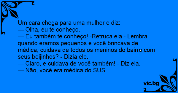 — Eu também te conheço! -Retruca ela - Lembra quando eramos pequenos e você brincava de médica, cuidava de todos os meninos do bairro com seus beijinhos? - Dizia ele.