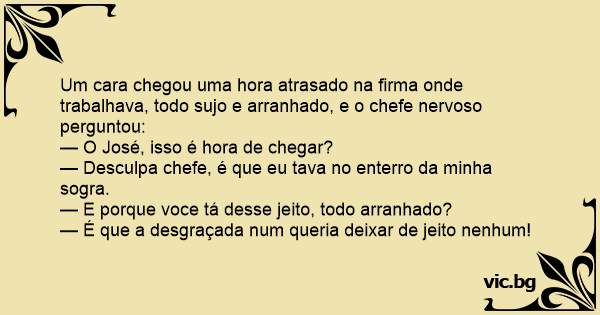 — Desculpa chefe, é que eu tava no enterro da minha sogra.