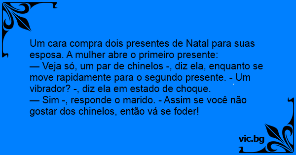— Sim -, responde o marido. - Assim se você não gostar dos chinelos, então vá se fоdеr!