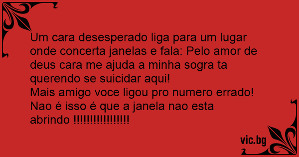 Um cara desesperado liga para um lugar onde concerta janelas e fala: Pelo amor de deus cara me ajuda a minha sogra ta querendo se suicidar aqui!