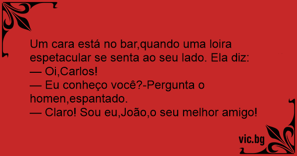 Um cara está no bar,quando uma loira espetacular se senta ao seu lado. Ela diz: