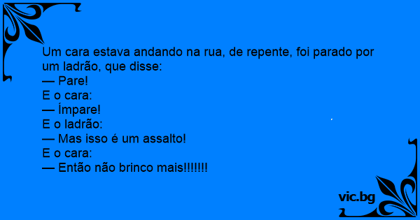 Um cara estava andando na rua, de repente, foi parado por um ladrão, que disse: