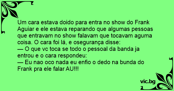Um cara estava doido para entra no show do Frank Aguiar e ele estava reparando que algumas pessoas que entravam no show falavam que tocavam aguma coisa. O cara foi lá, e osegurança disse: