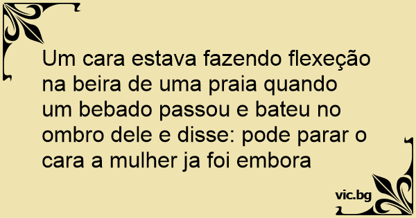 Um cara estava fazendo flexeção na beira de uma praia quando um bebado passou e bateu no ombro dele e disse: pode parar o cara a mulher ja foi embora