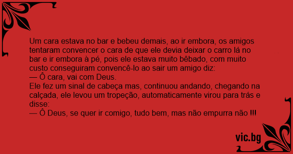 — Ô Deus, se quer ir comigo, tudo bem, mas não empurra não !!!