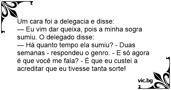 — Eu vim dar queixa, pois a minha sogra sumiu. O delegado disse: