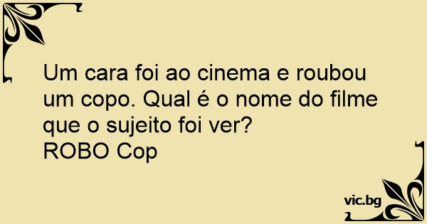 Um cara foi ao cinema e roubou um copo. Qual é o nome do filme que o sujeito foi ver?