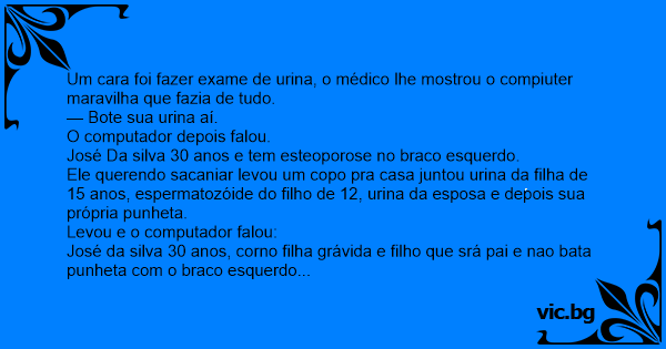 Um cara foi fazer exame de urina, o médico lhe mostrou o compiuter maravilha que fazia de tudo.