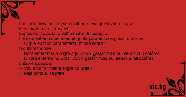 — Para enterrar sua sogra aqui vc vai gastar mais ou menos 500 doláres.