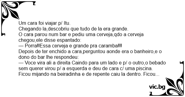 — Роrrа!!Essa cerveja e grande pra caramba!!!