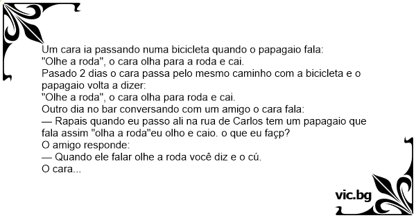 Um cara ia passando numa bicicleta quando o papagaio fala:
