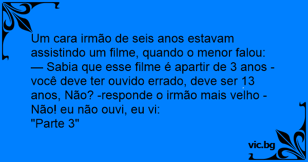 — Sabia que esse filme é apartir de 3 anos -você deve ter ouvido errado, deve ser 13 anos, Não? -responde o irmão mais velho -Não! eu não ouvi, eu vi: