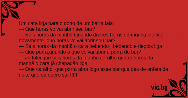 — Seis horas da manhã Quando dá três horas da manhã ele liga novamente -que horas vc vai abrir seu bar?